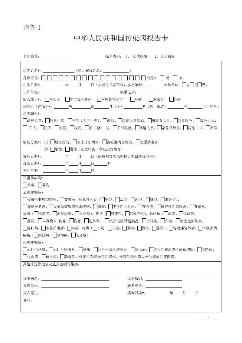 附件:中華人(rén)民(mín)共和國傳染病報(bào)告卡